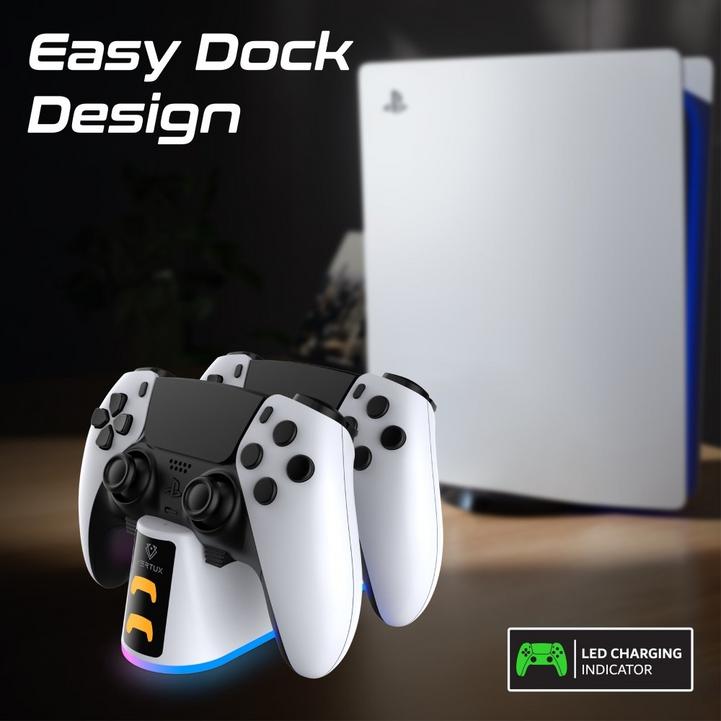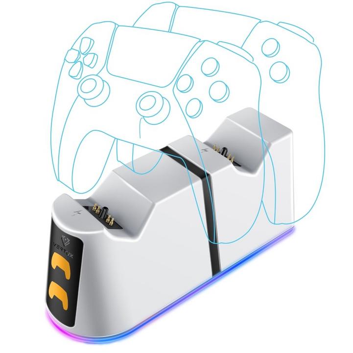 فيرتكس قاعدة شحن وحدة تحكم بلايشتيشن PS5 مع فتحات مزدوجة للتثبيت، وأضواء RGB ومؤشر بطارية LED