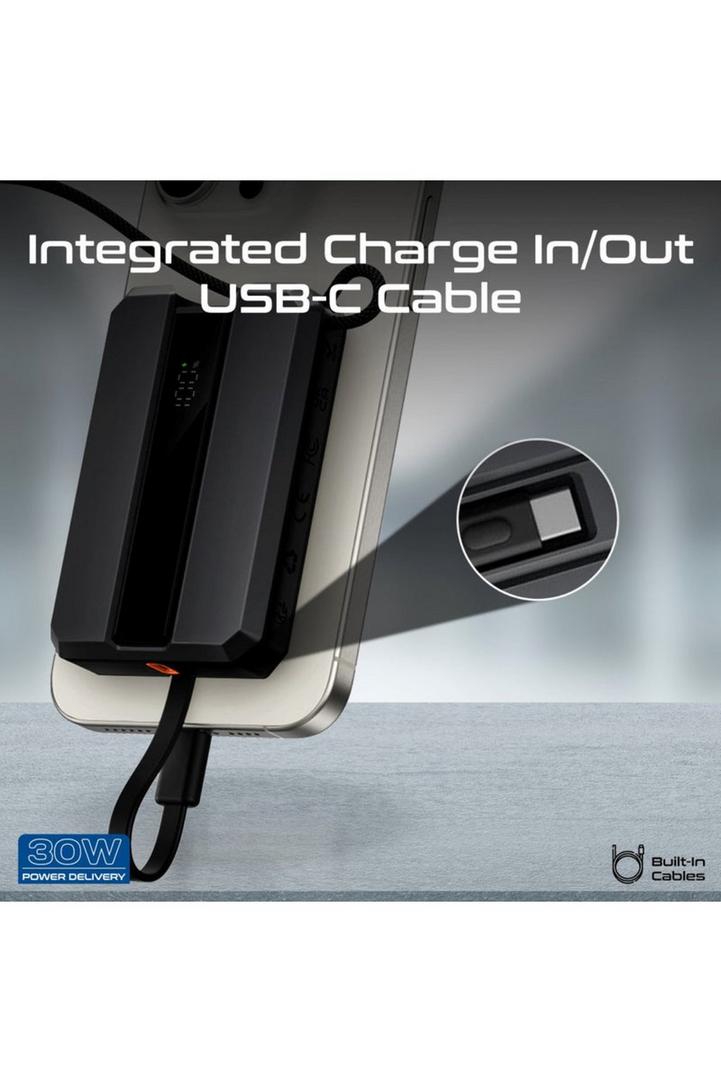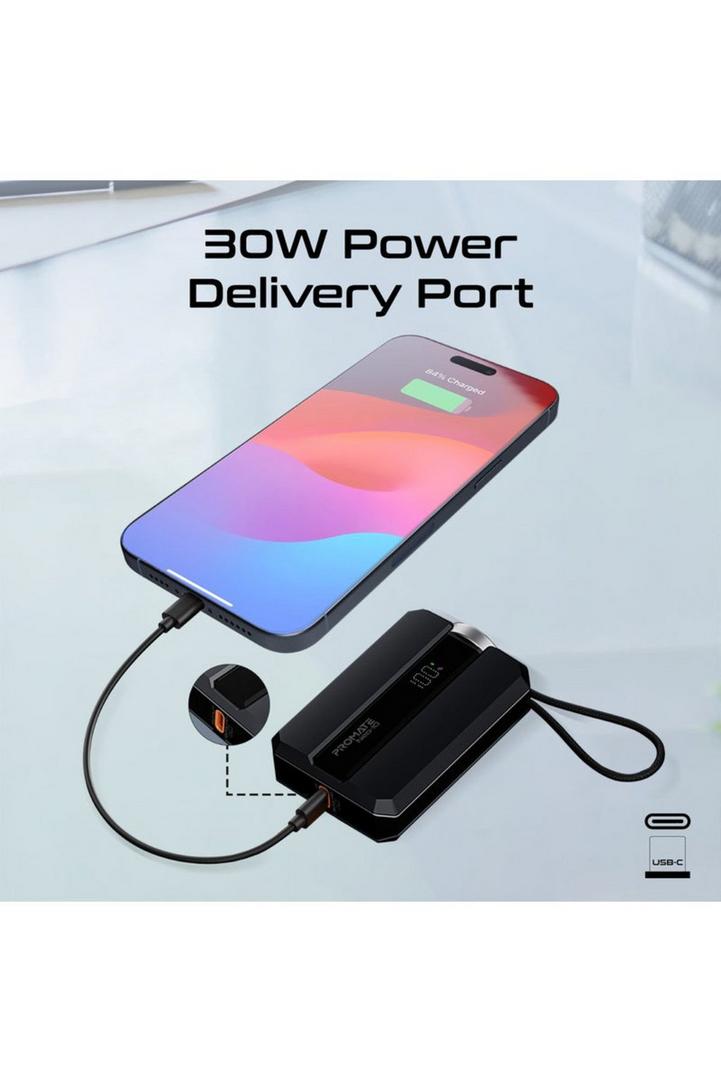 Promate بنك طاقة 10000مللي أمبير، كابل USB-C 30W مدمج، منفذ PD