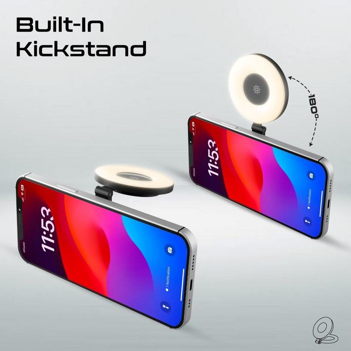 بروميت ضوء سيلفي على شكل حلقة قابل لاعادة الشحن ويدعم تقنية ماج سيف بتصميم نحيف وانيق