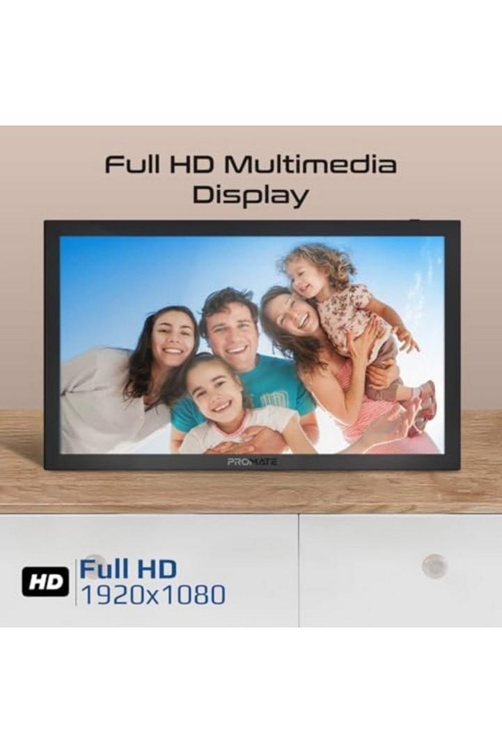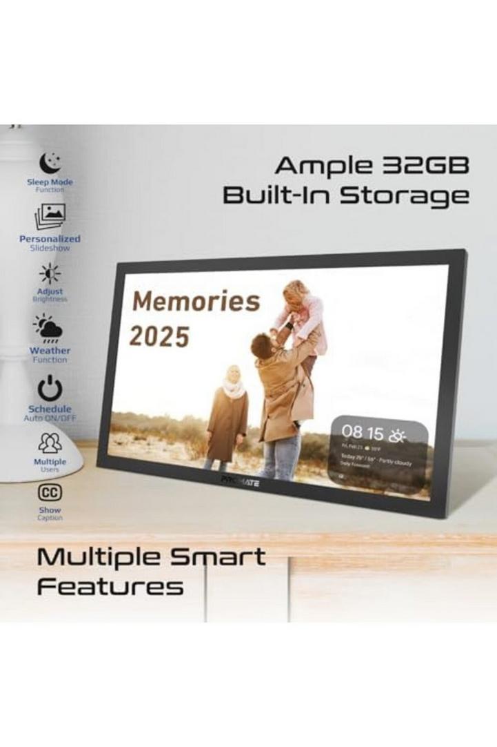 بروميت إطار صور رقمي عالي الوضوح بشاشة لمس مقاس 15.6 بوصة، وسعة تخزين 32 جيجابايت، وتحكم لاسلكي بالتطبيقات، اشكال عرض متعددة للصور والفيديو، ودعم بطاقات USB/TF، ومكبر صوت مزدوج