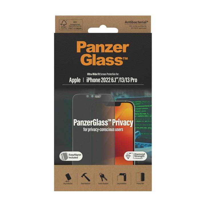 بانزرجلاس واقي شاشة أيفون 14 و 13 و 13 برو، تدعم الخصوصية، شفاف