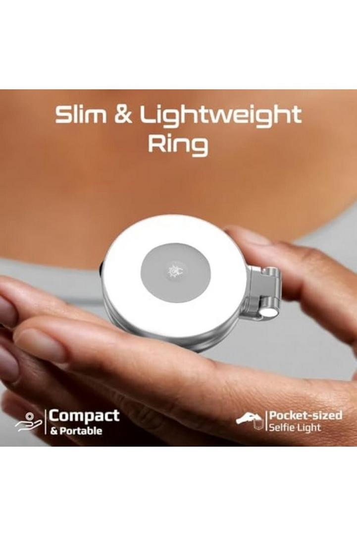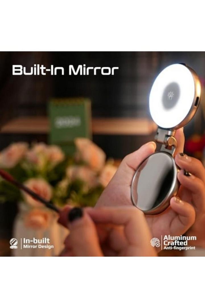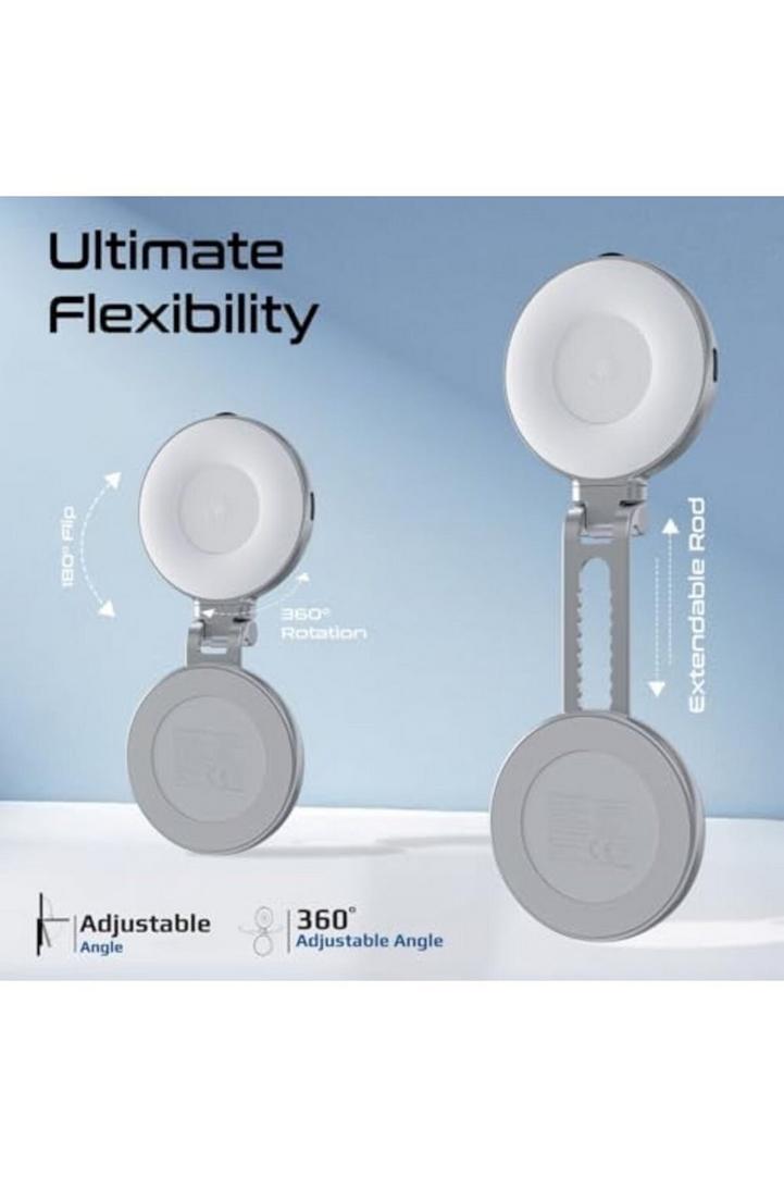 بروميت مصباح سيلفي LED متوافق مع ماج سيف، 3 أوضاع إضاءة، سطوع قابل للتعديل، مرآة مدمجة، دوران 360 درجة، تصميم حلقي، قضيب قابل للتمديد للهواتف، عصي سيلفي