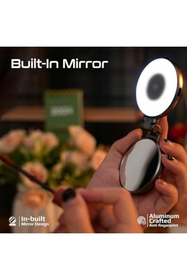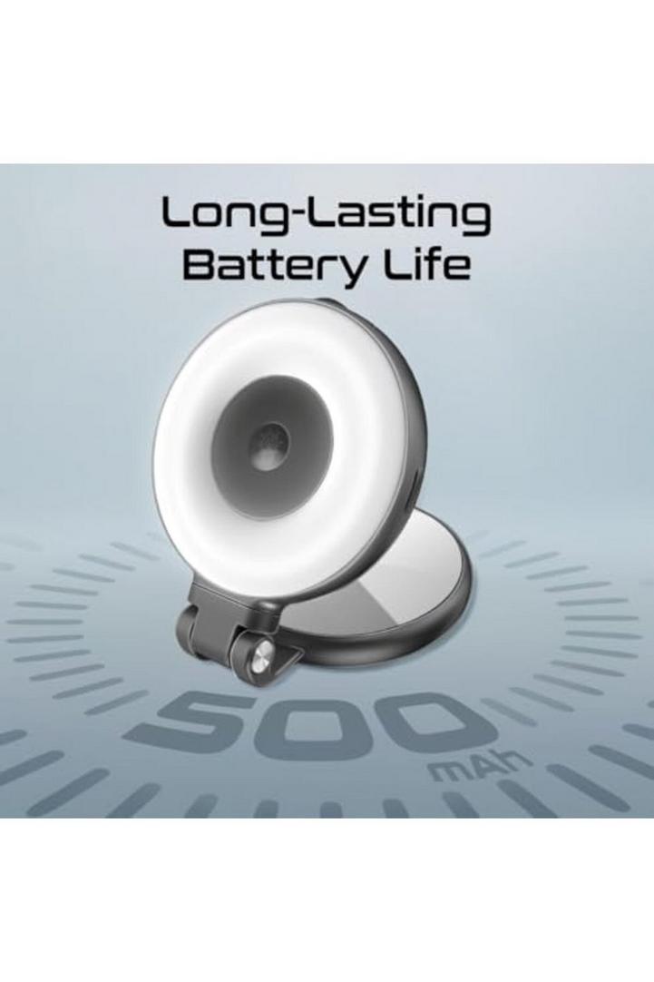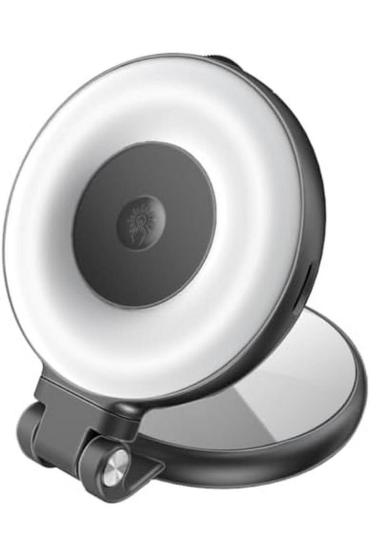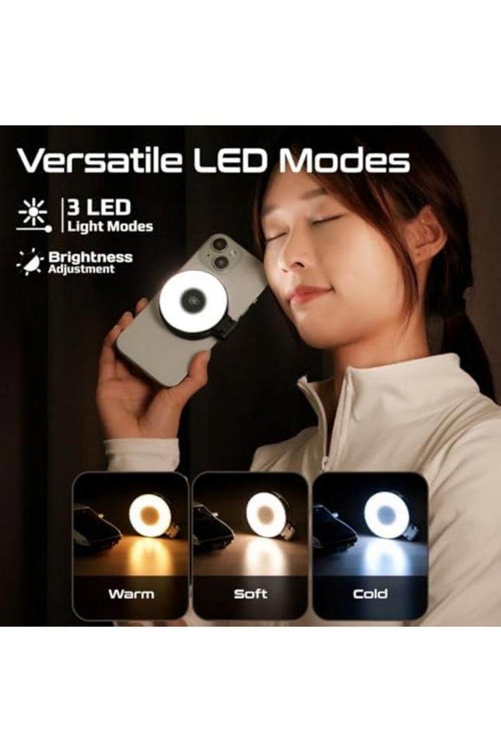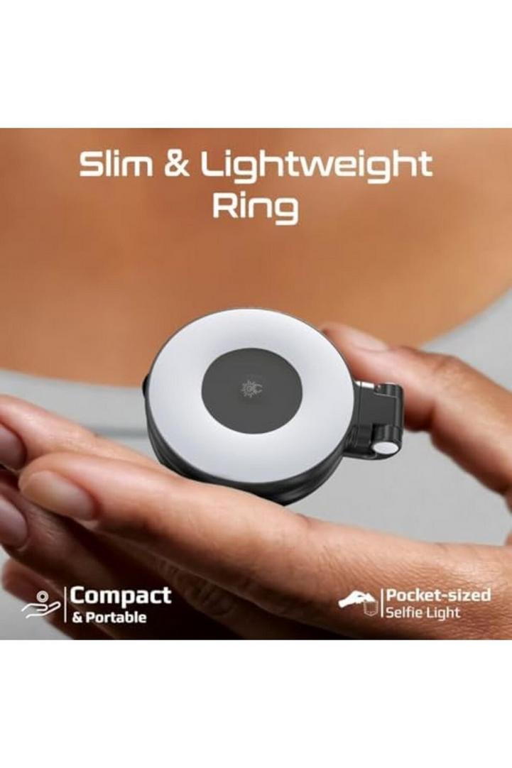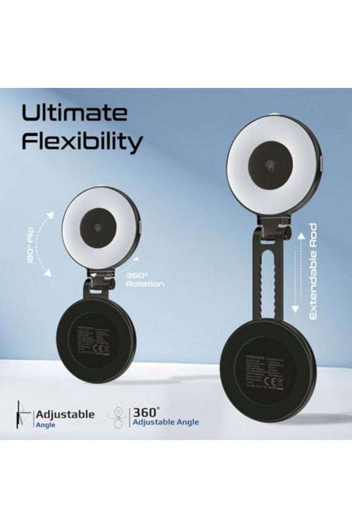 بروميت مصباح سيلفي LED متوافق مع ماج سيف، 3 أوضاع إضاءة، سطوع قابل للتعديل، مرآة مدمجة، دوران 360 درجة، تصميم حلقي، قضيب قابل للتمديد للهواتف، عصي سيلفي