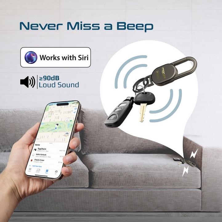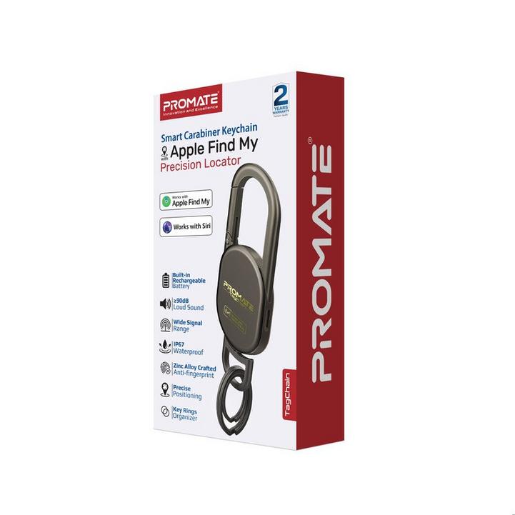 سلسلة مفاتيح بروميت لتعقب بلوتوث مع خاصية البحث عن جهاز أبل، تنبيه عالي 90 ديسيبل، مقاومة للماء IP67، وضع استعداد لمدة 3 أشهر، حلقة وصل قابلة لإعادة الشحن للمفاتيح والحيوانات الأليفة والحقائب، تصميم فائق المتانة وخفيف الوزن