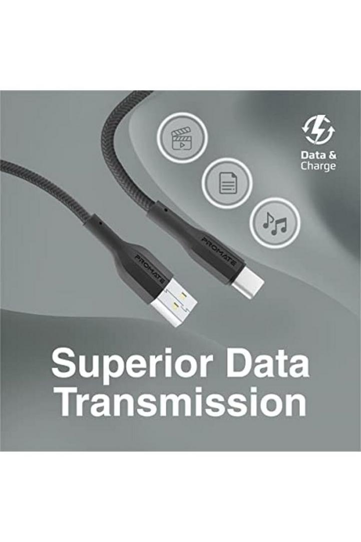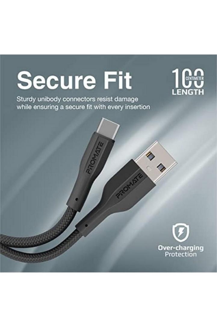 كابل بروميت USB إلى USB-C ، كابل شحن متين من السيليكون من النوع C مع شحن سريع 2 أمبير ، مزامنة بيانات 480 ميجابت في الثانية ، سلك 1 متر وعمر انحناء طويل 10000 لسامسونج جالاكسي S22 ، iPad Air ، XCord-AC ، أسود