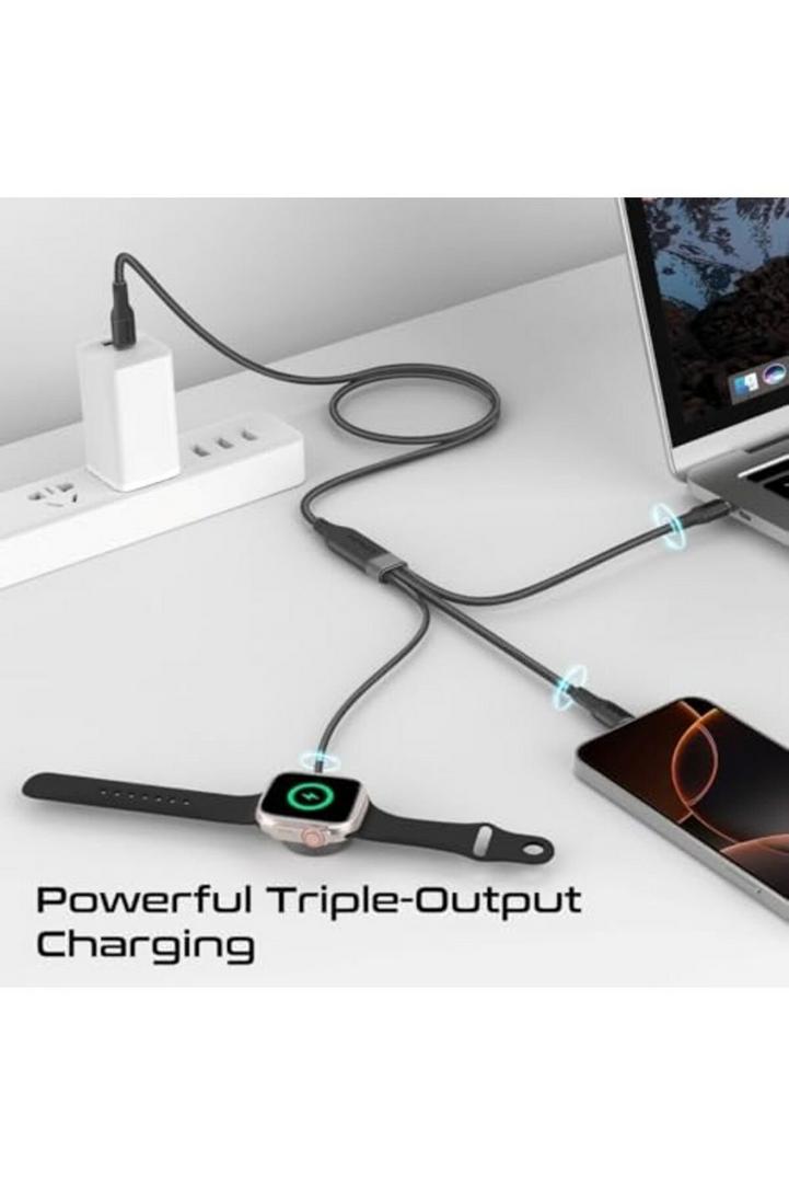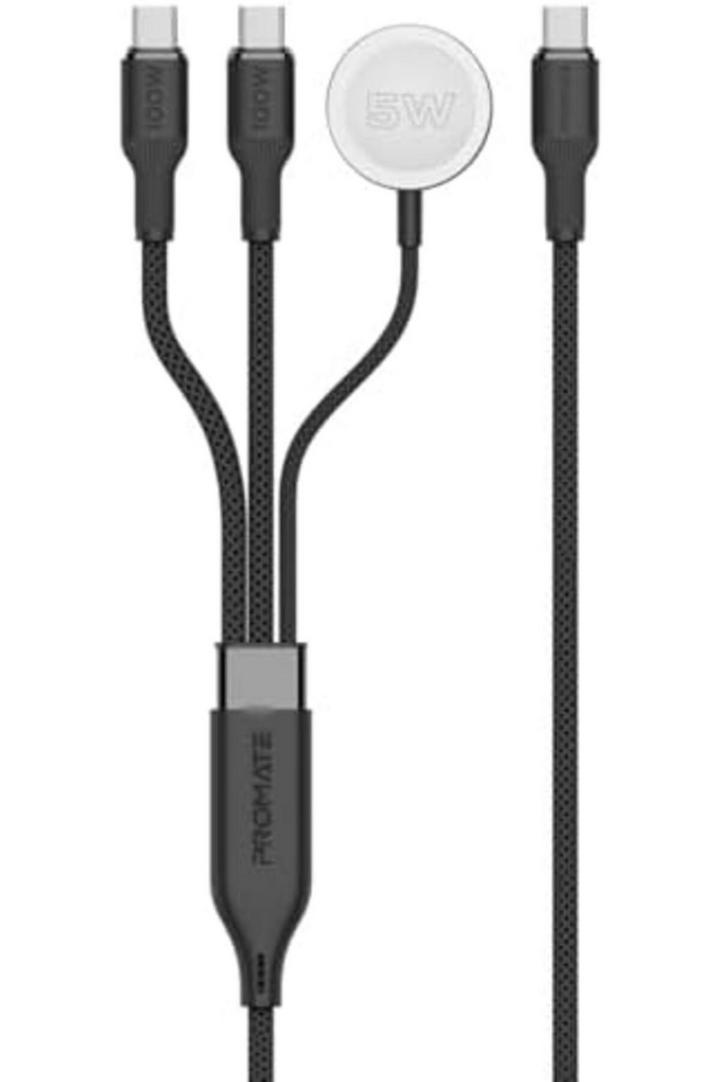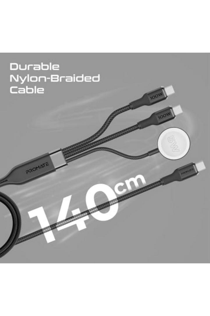 بروميت كابل شحن متعدد الأجهزة مع مخرجين USB-C PD100W، شاحن متوافق مع Apple Watch، نقل بيانات بسرعة 480 ميجابت في الثانية، تصميم مضفر من النايلون، طول الكابل 140 سم، توافق عالمي، Fusion-CCW