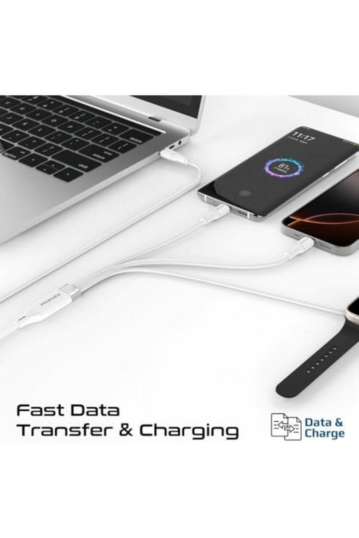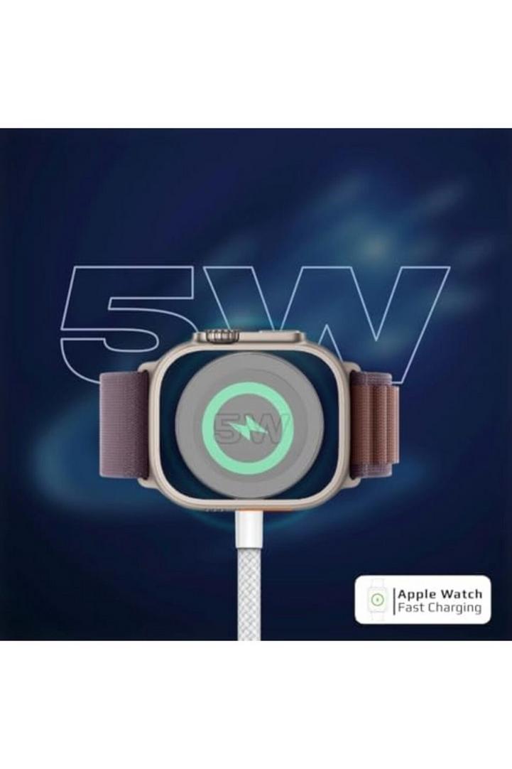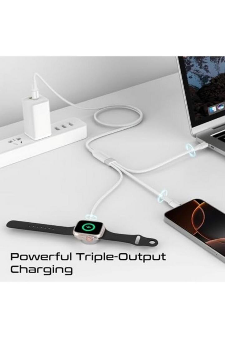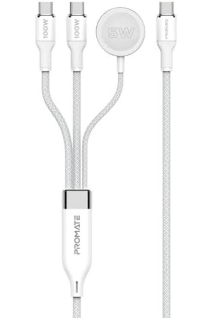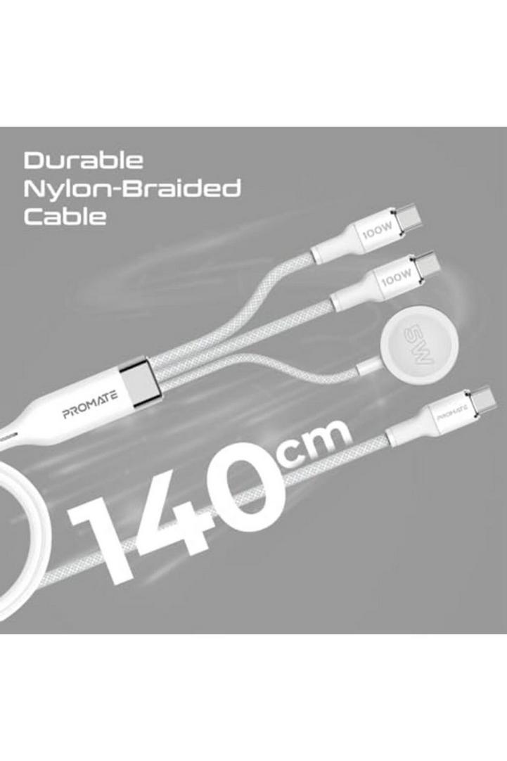 بروميت كابل شحن متعدد الأجهزة مع مخرجين USB-C PD100W، شاحن متوافق مع Apple Watch، نقل بيانات بسرعة 480 ميجابت في الثانية، تصميم مضفر من النايلون، طول الكابل 140 سم، توافق عالمي، Fusion-CCW