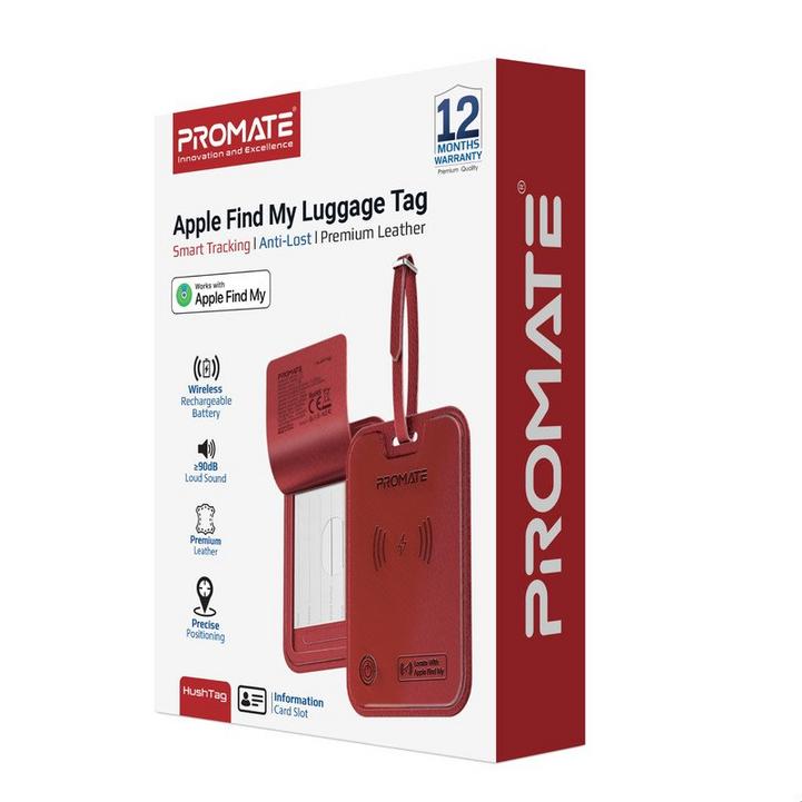 علامة أمتعة ذكية من الجلد من بروميت مضادة للفقدان مع خاصية تتبع Apple Find My Tracker، وحماية RFID، وشحن لاسلكي، وتنبيه 90 ديسيبل، وبطارية تدوم 6 أشهر، وتصميم نحيف ومتين، وبلوتوث 5.2 لأجهزة Apple فقط