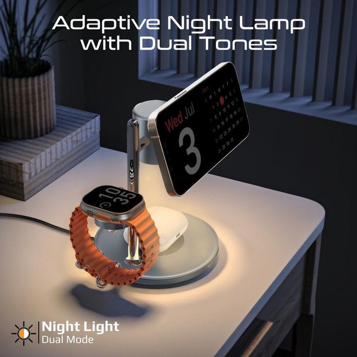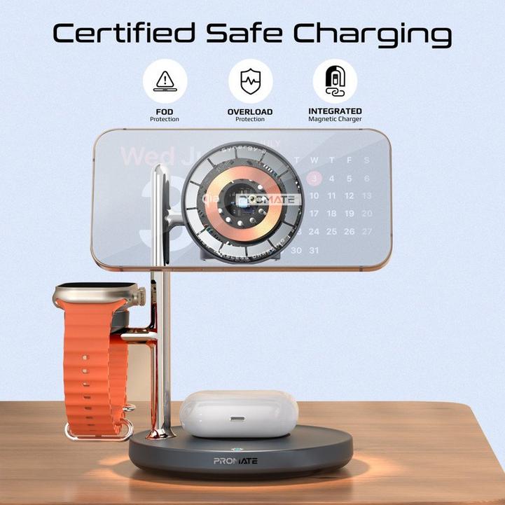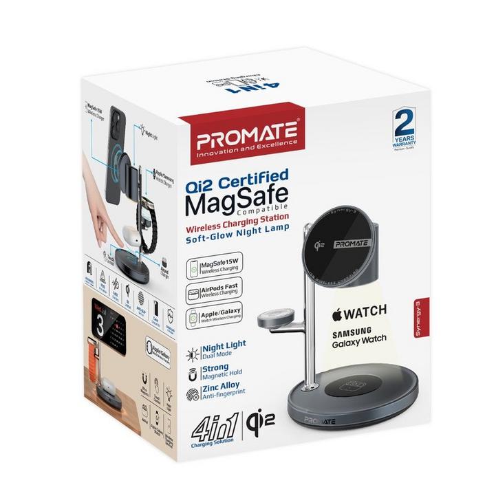Promate شاحن لاسلكي 4في1، MagSafe، ساعة، AirPods، طاقة 25.5W