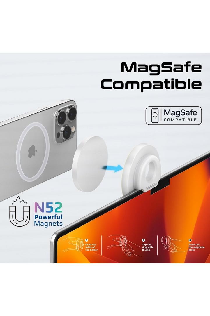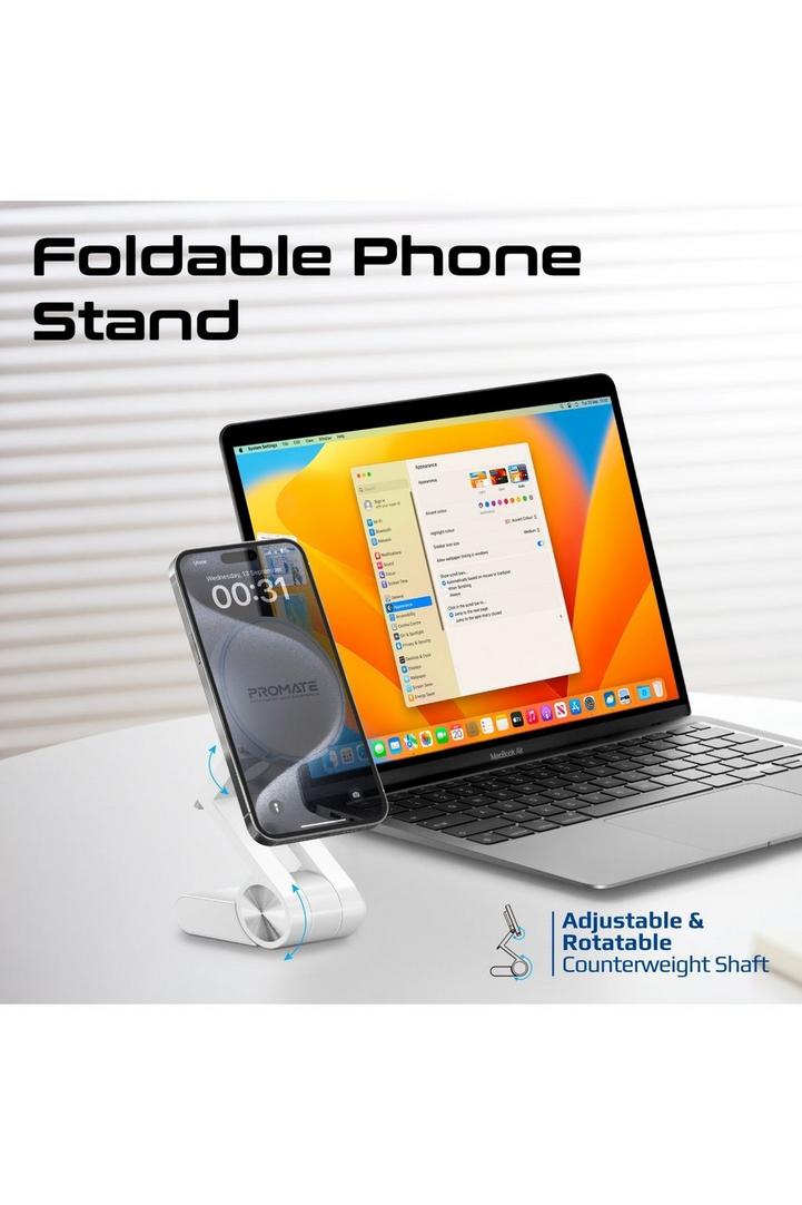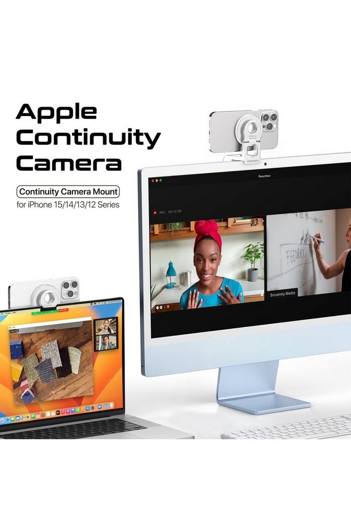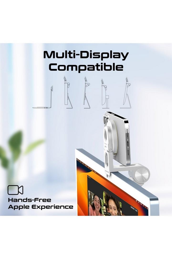 حامل هاتف متعدد الاستخدامات وحامل كاميرا Promate ، دعم ميزة كاميرا الاستمرارية من Apple ، مع مغناطيس قوي وتصميم مرن متين لجميع الشاشات ، VersaMount (أبيض)