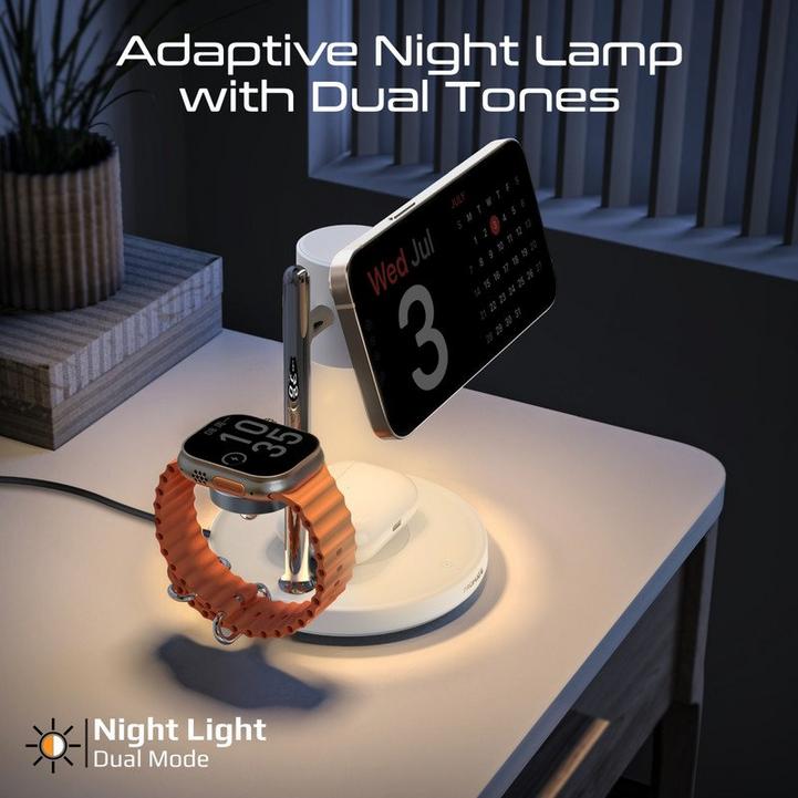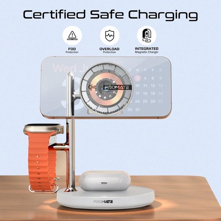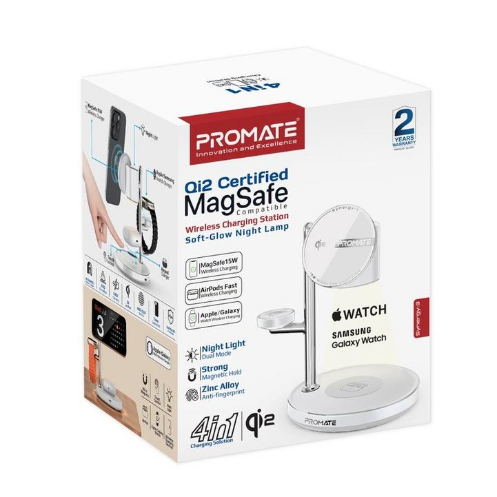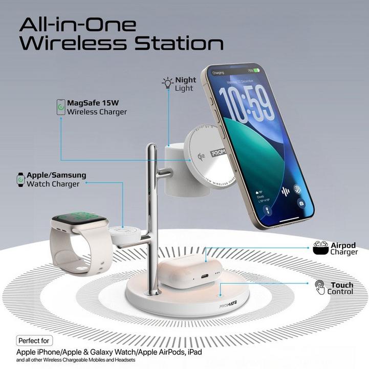Promate شاحن لاسلكي 4في1، MagSafe، ساعة، AirPods، طاقة 25.5W