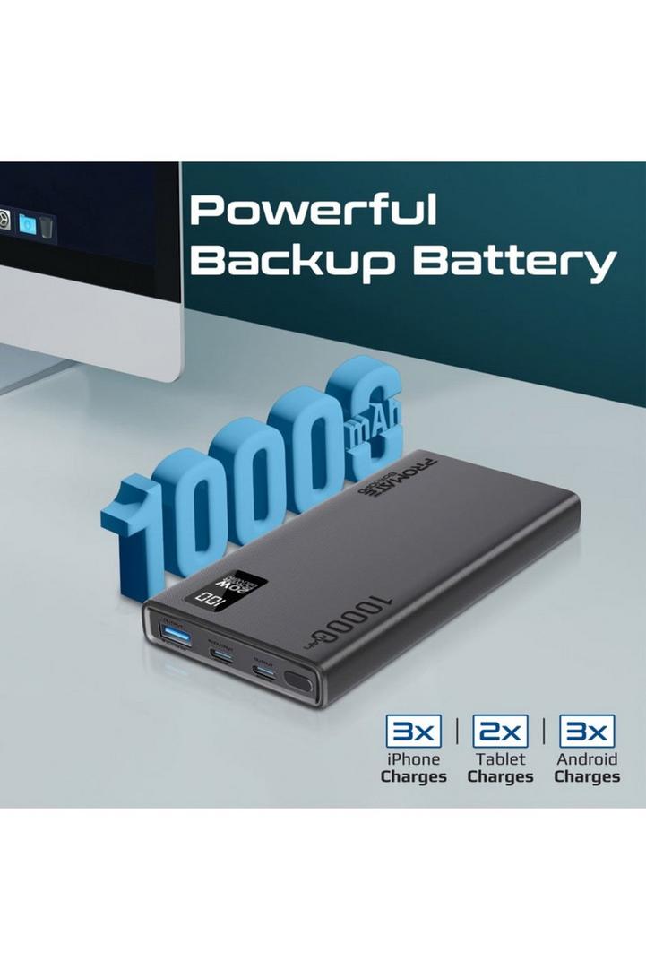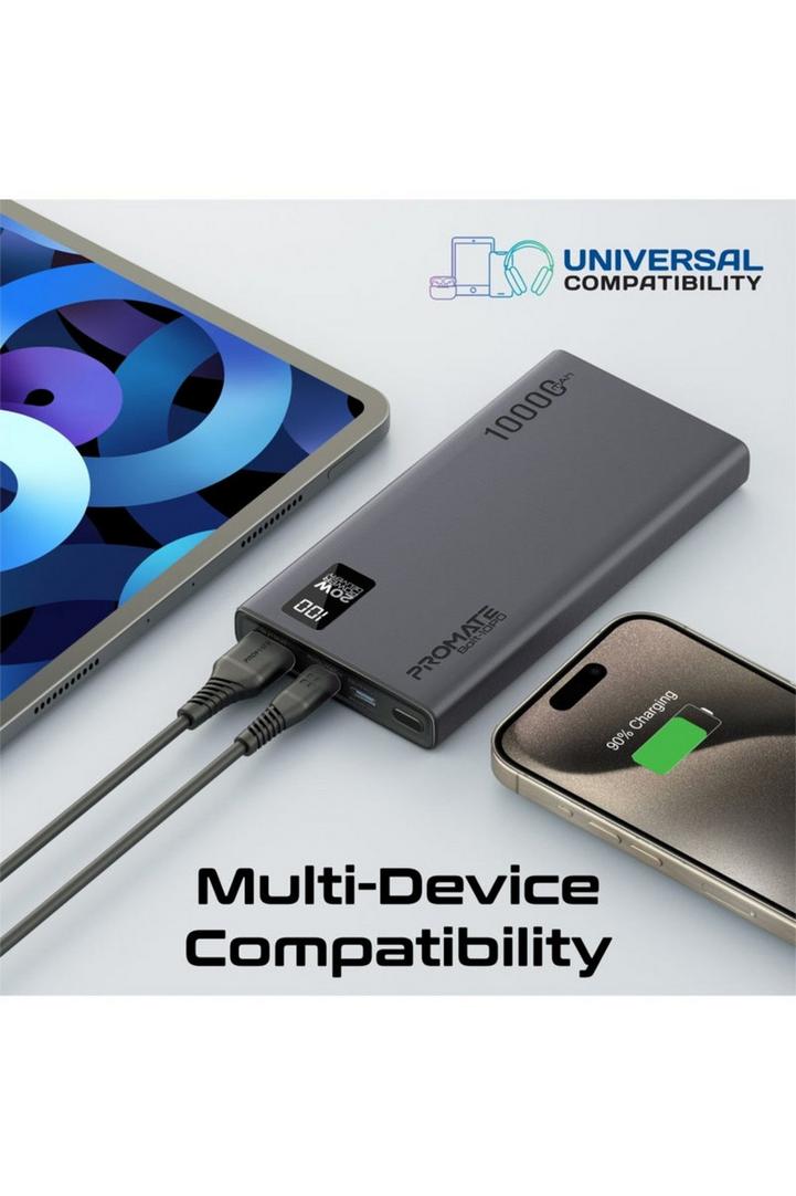 Promate Bolt-10PD بنك طاقة 10000مللي أمبير، 20W USB-C، QC 3.0، شاشة