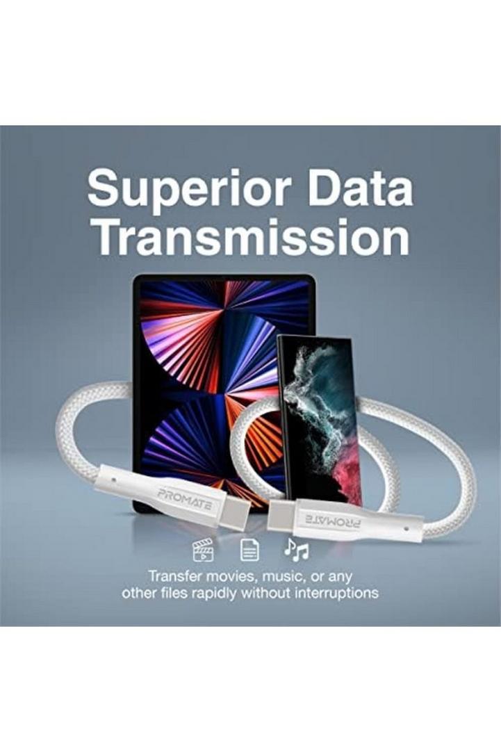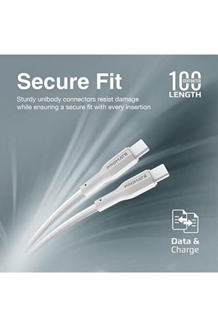 كابل بروميت USB-C إلى USB-C ، بريميوم 60 واط ، كابل شحن سريع من النوع C مع مزامنة بيانات 480 ميجابت في الثانية وسلك سيليكون مضاد للتشابك 100 سم لهاتف Samsung Galaxy S22 و iPad Air و Dell XPS 13 و XCord-CC أبيض