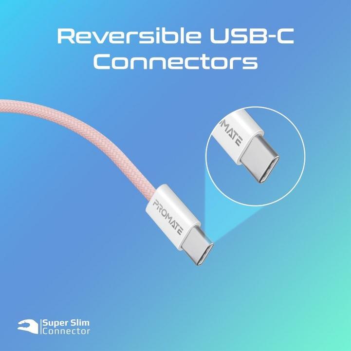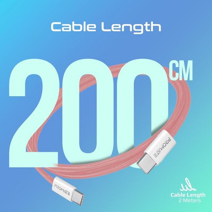 بروميت، EcoLine-CC200، كابل USB-C، شحن سريع 60 واط، 480 ميجابت في الثانية، 200 سم، نايلون، وردي
