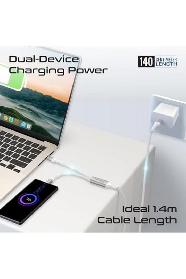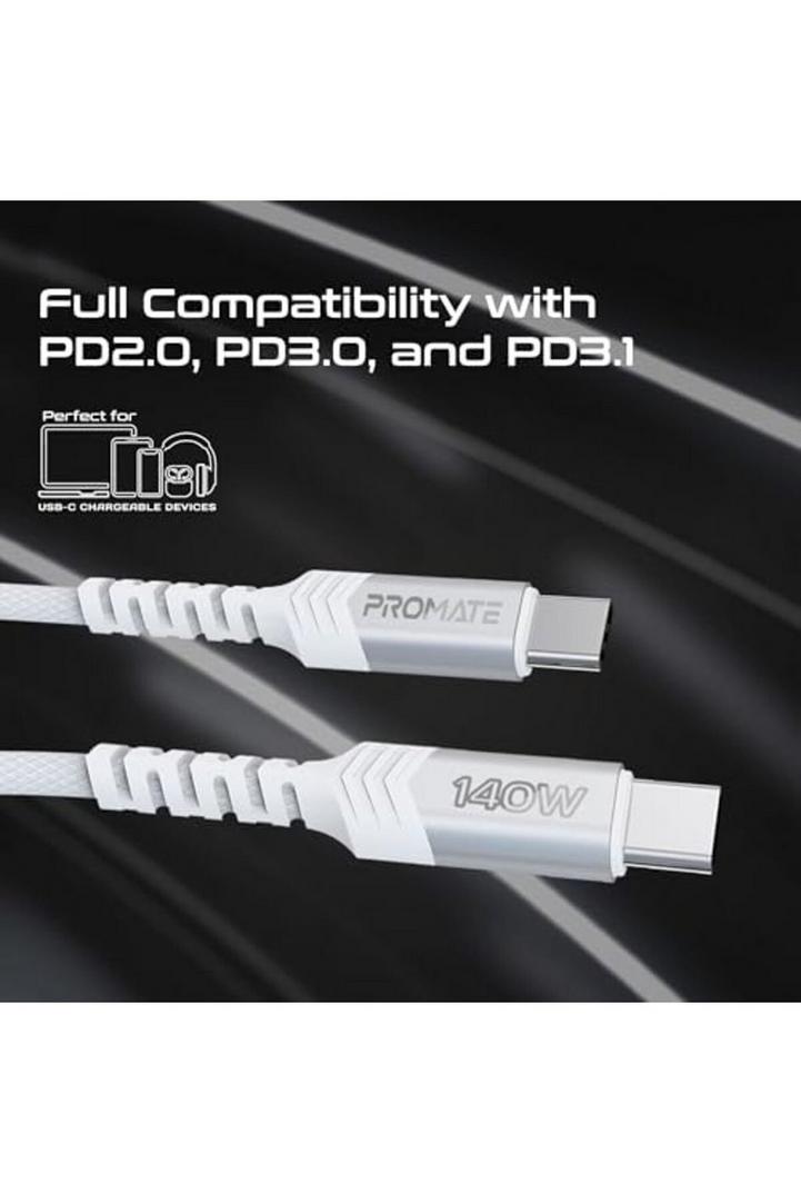 بروميت كابل USB-C™ إلى USB-C™ مزدوج مع توصيل طاقة 140 واط، ونقل بيانات بسرعة 480 ميجابت في الثانية، ودعم PD2.0 وPD3.0 وPD3.1، وحماية من التيار الزائد، وتصميم مضفر لأجهزة الكمبيوتر المحمولة والأجهزة اللوحية والهواتف الذكية