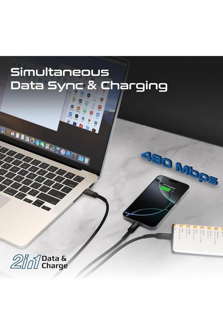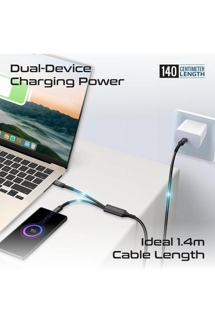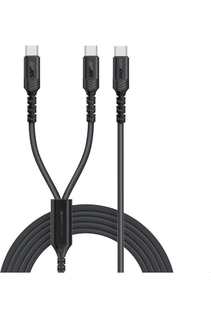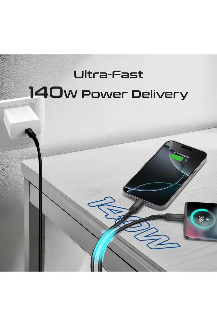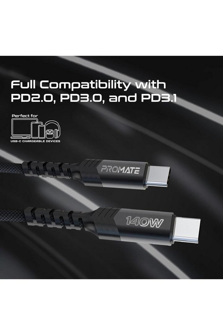 بروميت كابل USB-C™ إلى USB-C™ مزدوج مع توصيل طاقة 140 واط، ونقل بيانات بسرعة 480 ميجابت في الثانية، ودعم PD2.0 وPD3.0 وPD3.1، وحماية من التيار الزائد، وتصميم مضفر لأجهزة الكمبيوتر المحمولة والأجهزة اللوحية والهواتف الذكية