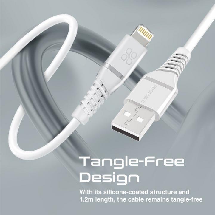 كابل بروميت USB-A إلى Lightning ، شاحن USB-A فائق السرعة 2.4 أمبير مع 480 ميجابت في الثانية Data Syn لأجهزة iPhone 13 و iPad و AirPods Pro و PowerLine-Ai120 أبيض