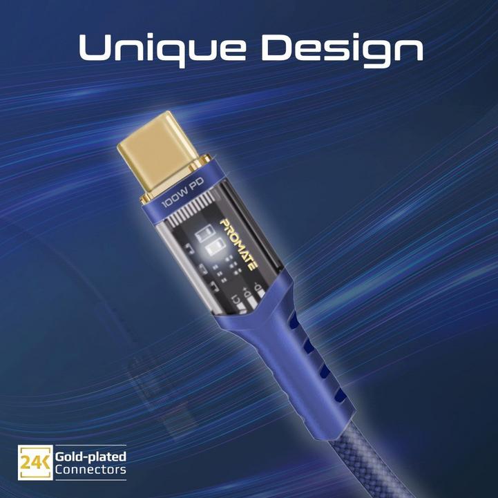 بروميت كابل USB-C™ إلى USB-C™، توصيل طاقة سريع الشحن 100 واط مع أطراف شفافة، LED، مزامنة بيانات بسرعة 480 ميجابت في الثانية، سلك مجدول من النايلون بطول 120 سم للهواتف الذكية وأجهزة الكمبيوتر المحمولة
