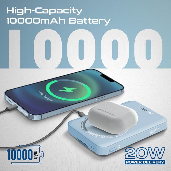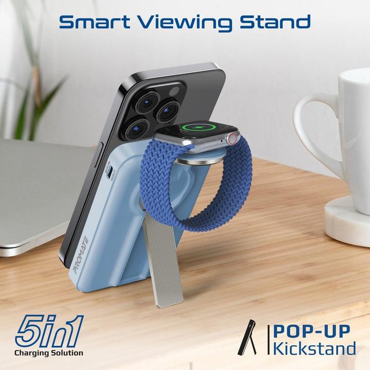Promate بنك طاقة 3في1، 10000مللي أمبير، شحن MagSafe و20W وساعة