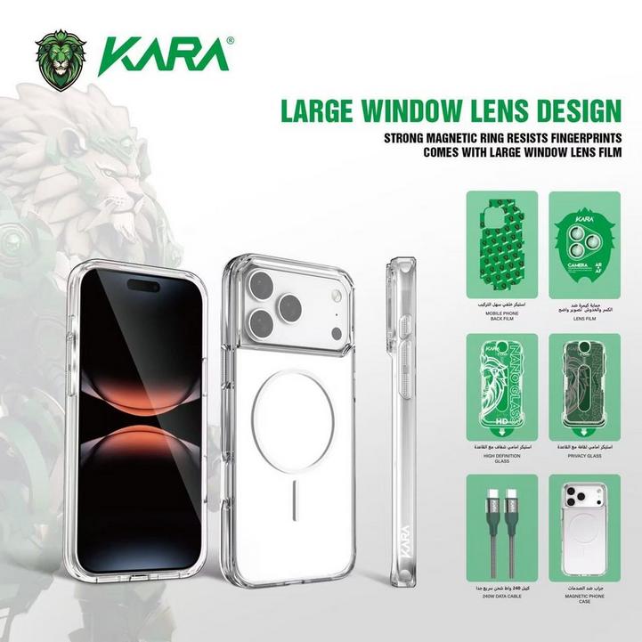 كارا شيلد حزمة حماية تدعم الخصوصية، أيفون 17 ، غطاء شفاف مغناطيسي، واقي عدسة الكاميرا، كابل تايب سي الي تايب سي