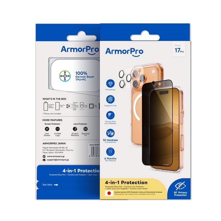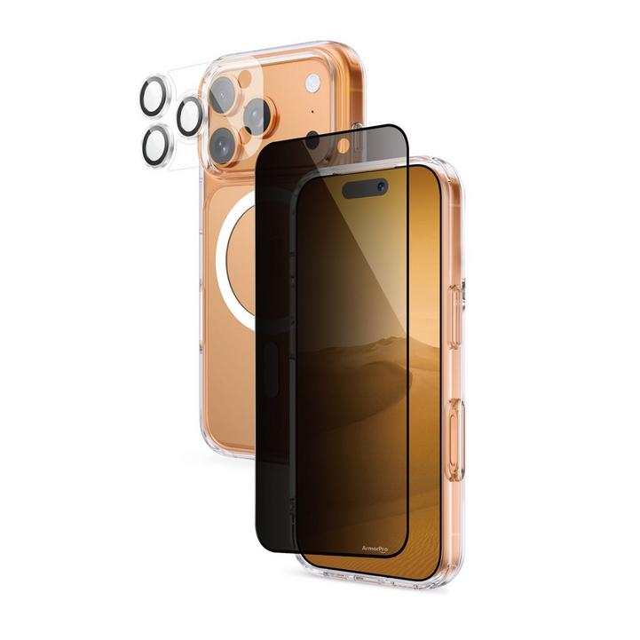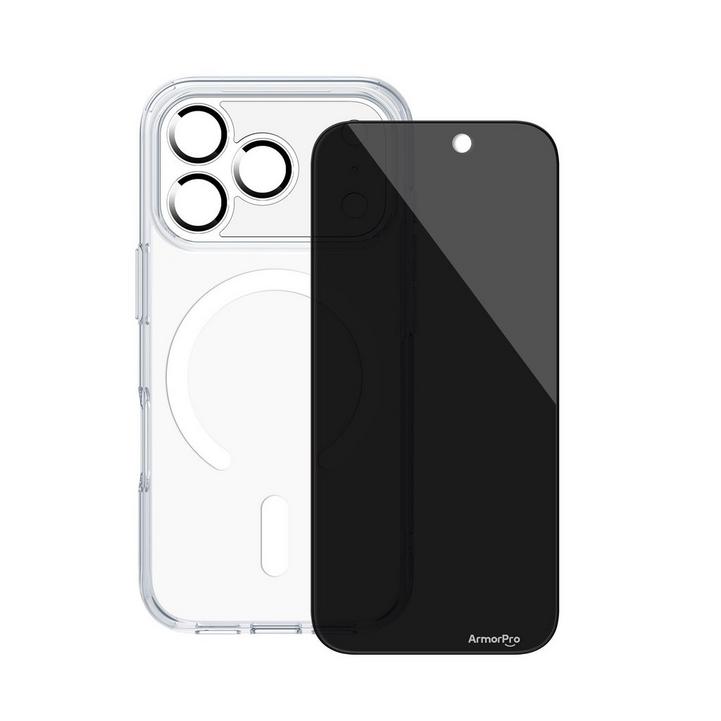 ارمربرو، حزمة أيفون 17 برو (واقي شاشة، واقي عدسة الكاميرا، غطاء ميج سيف)، شفاف
