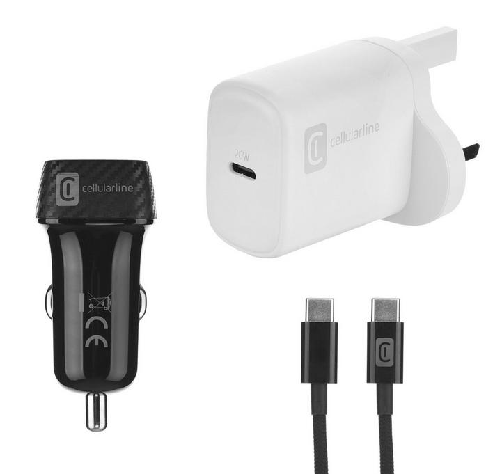 سيلولارلاين، شاحن يو اس بي سي، 20 واط + شاحن سيارة يو اس بي سي، 20 واط، كابل يو اس بي سي الي يو اس بي سي