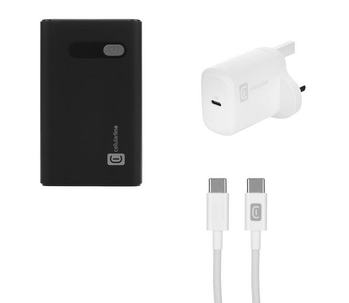 سيلولارلاين، بنك طاقة 10000 مللي أمبير+ شاحن منزلي يو اس بي سي، 20 واط+كابل يو اس بي سي الي يو اس بي سي، 1.5 متر