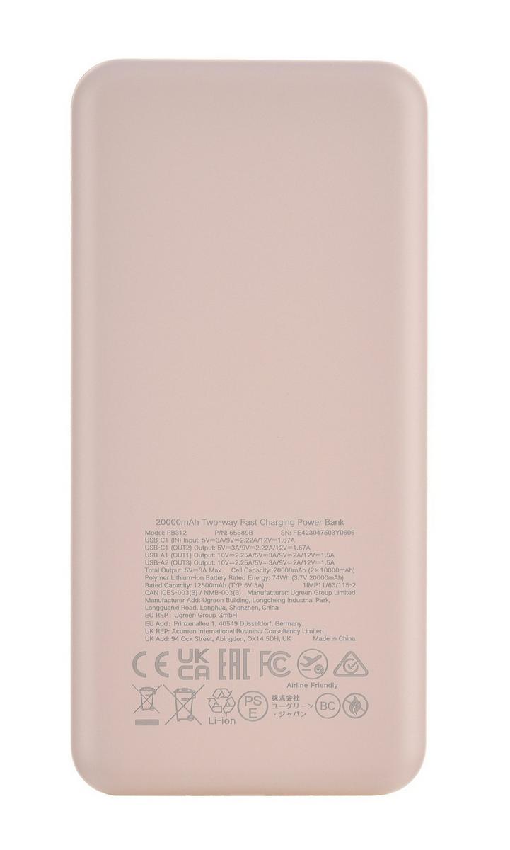 يوجرين ، بطارية 20000 مللي أمبير بقوة 20 وط ، وردي