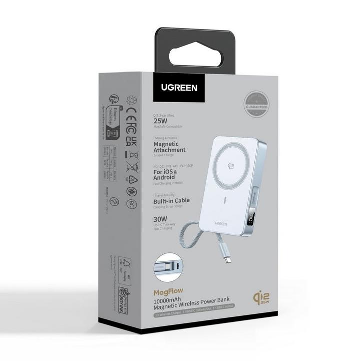يوجرين، شاحن متنقل لاسلكي 25 واط، فضي رمادي