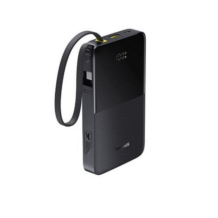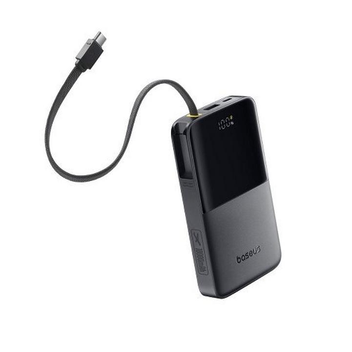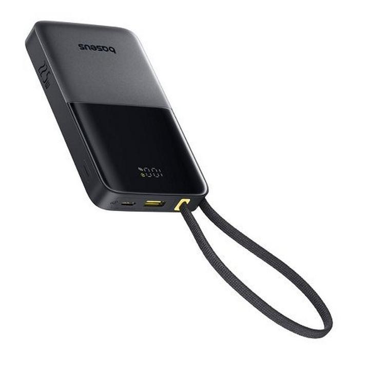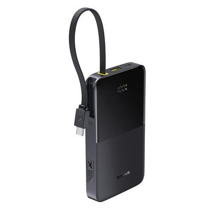 باسوس، بنك طاقة بشاشة عرض رقمية مع 2 كابل يو اس بي سي مدمجين، 10000 مللي أمبير، 45 واط، أسود