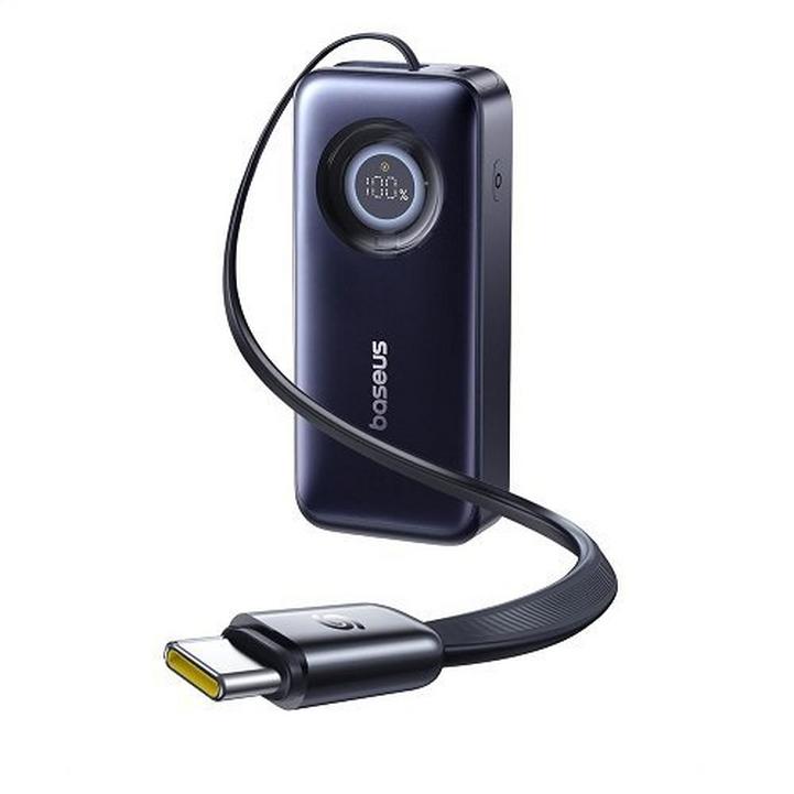 باسوس، بنك طاقة بشاشة عرض رقمية مع 2 كابل يو اس بي سي مدمجين، 10000 مللي أمبير، 45 واط، أسود