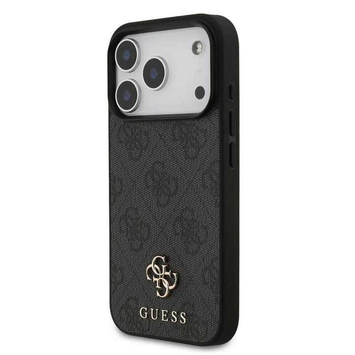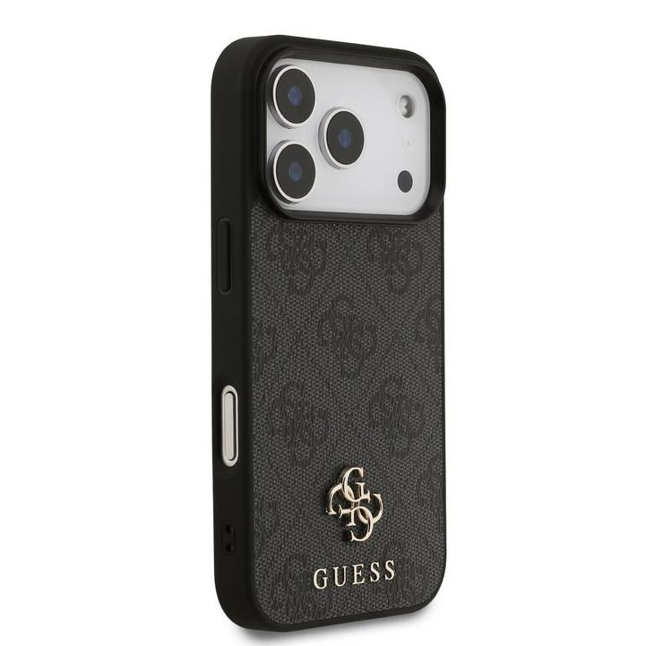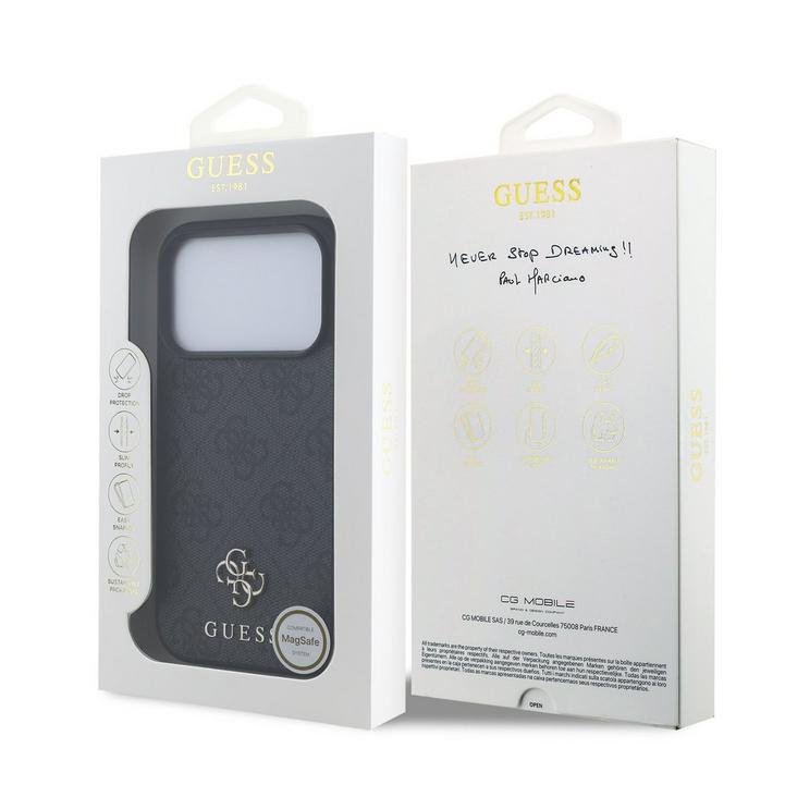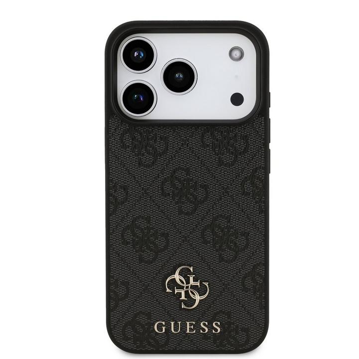 جيس، غطاء أيفون 17 برو، ميج سيف، جلد صناعي مع شعار معدني، أسود