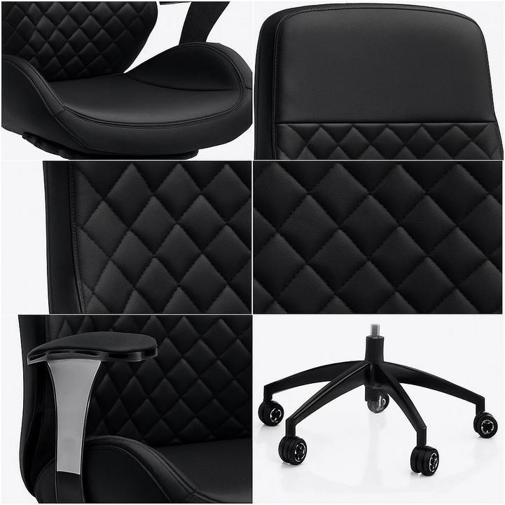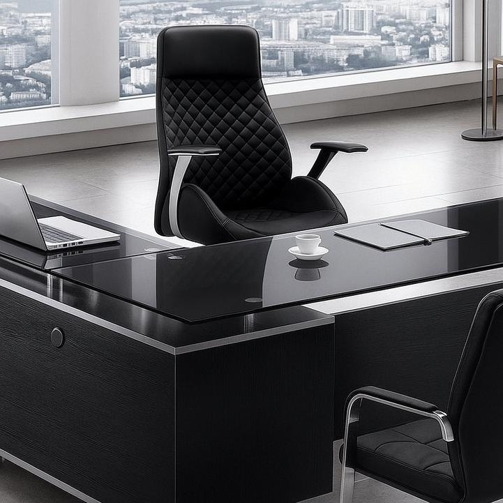 كرسي مكتب تنفيذي عام، جلد مرتفع الظهر، قابل للتعديل 360 درجة، اسود