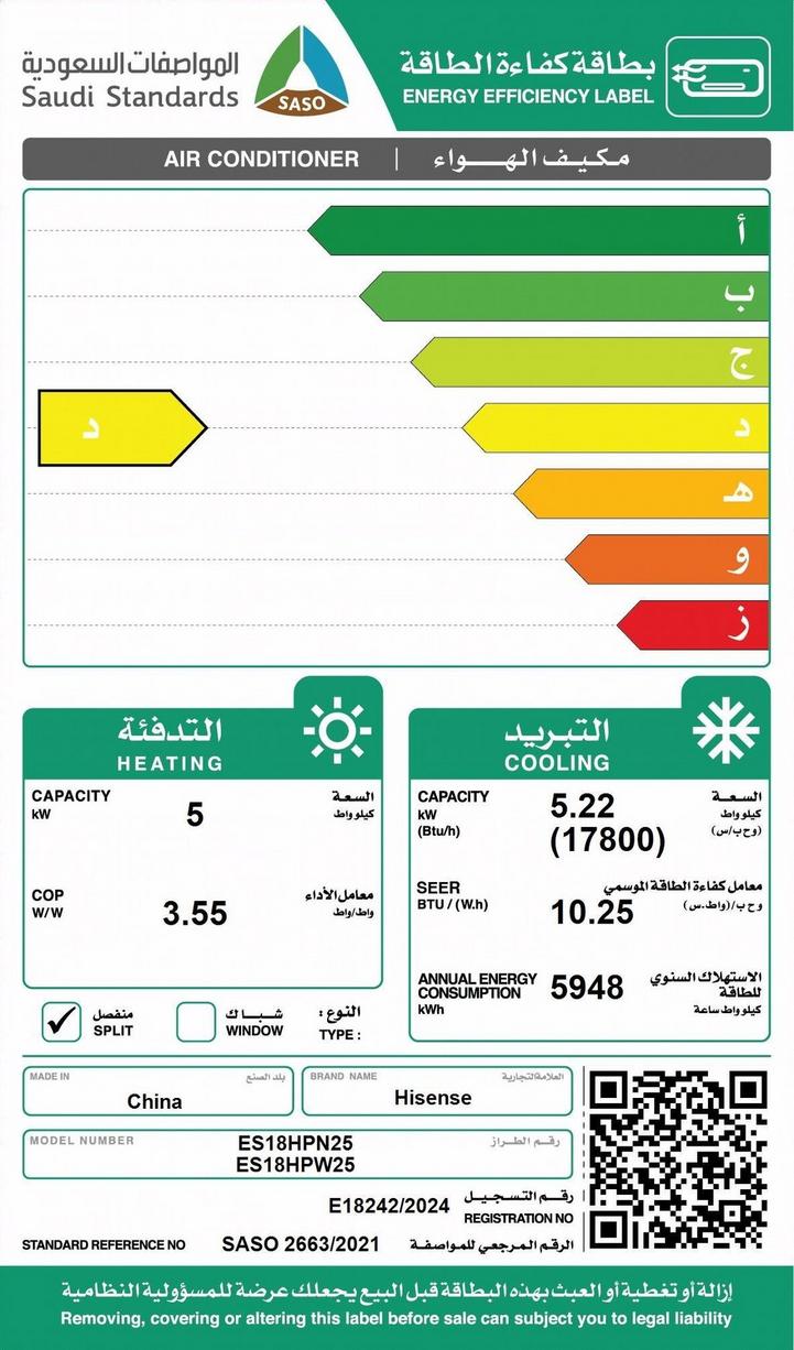 هايسنس، مكيف جداري، 17800 وحدة، واي فاي، حار/ بارد