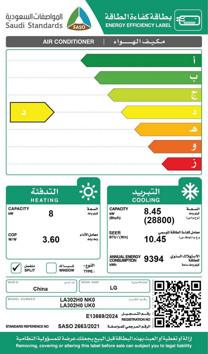 ال جي، مكيف جداري، 28,800 وحدة حرارية، حار وبارد، روتري، واي فاي، أبيض