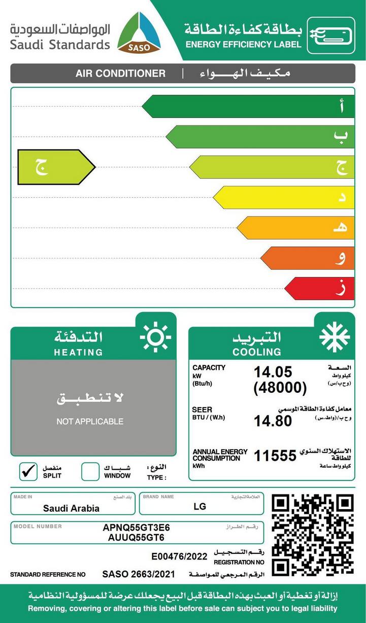ال جي مكيف سبليت، 18000 وحدة بارد فقط، إنفيرتر، أبيض