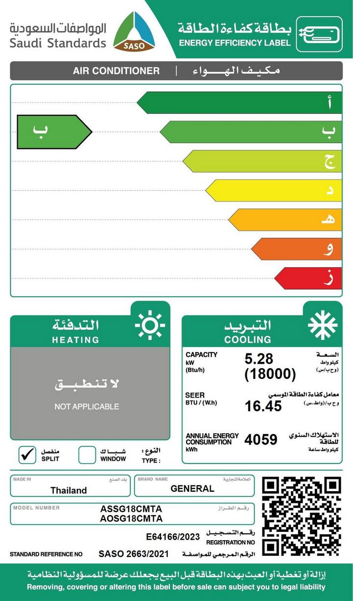 جنرال ، مكيف جداري 18000 وحدة، بارد انفيرتر كمبروسر فريون 32