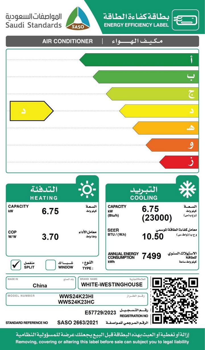 وايت وستنجهاوس مكيف سبليت، 23000 وحدة، بارد/ حار