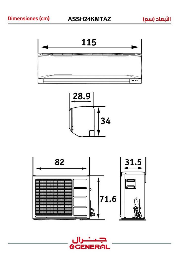 جينيرال مكيف انفرتر جداري، 24000 وحدة، حار و بارد