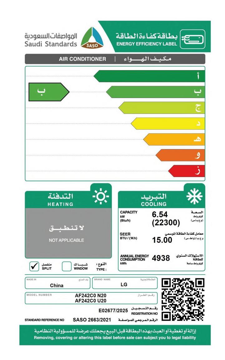 ال جي، مكيف جداري، 22,300 وحدة حرارية، انفرتر، بارد