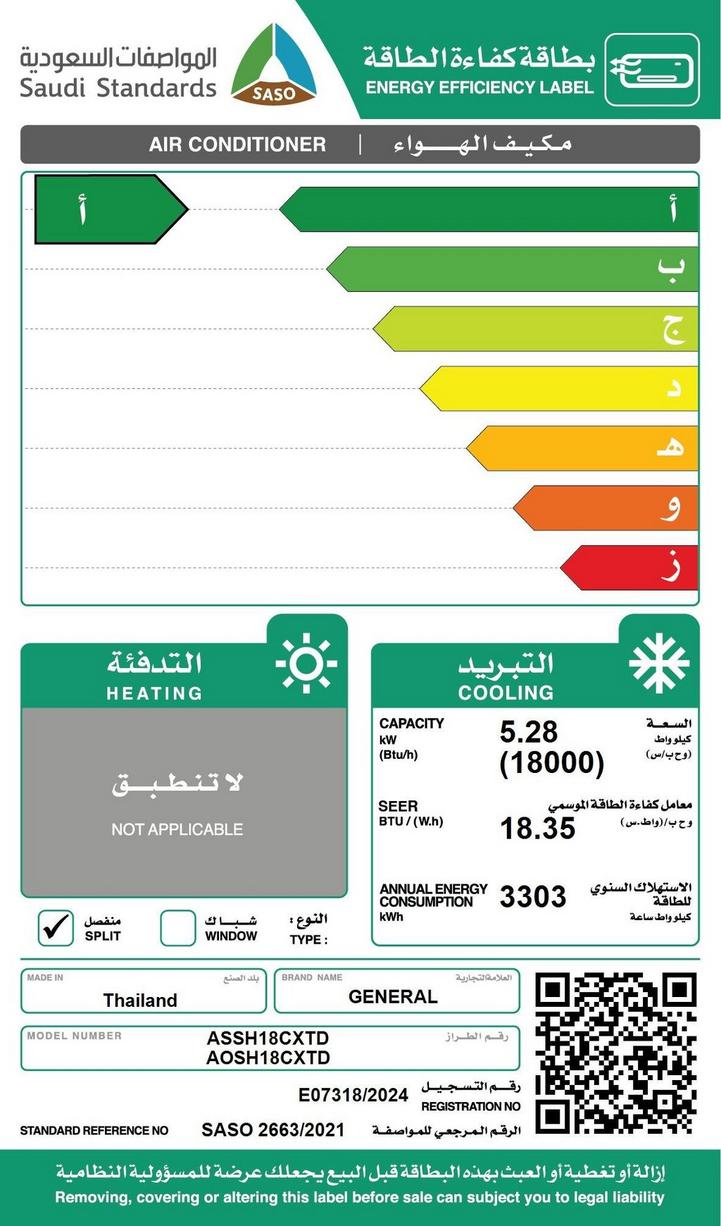 جينيرال، مكيف جداري، 24,000 وحدة حرارية، انفرتر، بارد