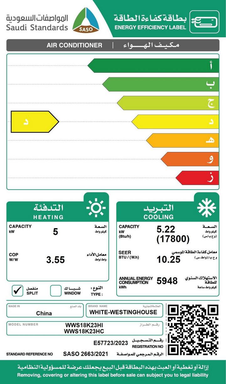 وايت وستنجهاوس مكيف سبليت، 17800 وحدة، بارد/ حار