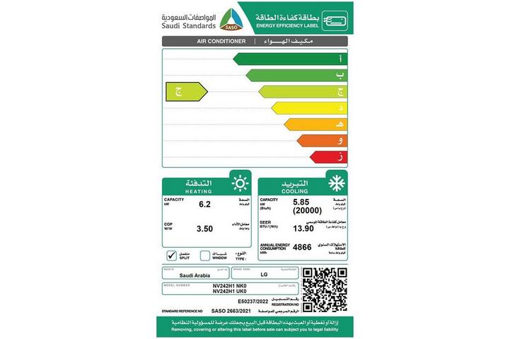 ال جي، مكيف جداري جرين انفرتر 20000 وحدة، حار بارد