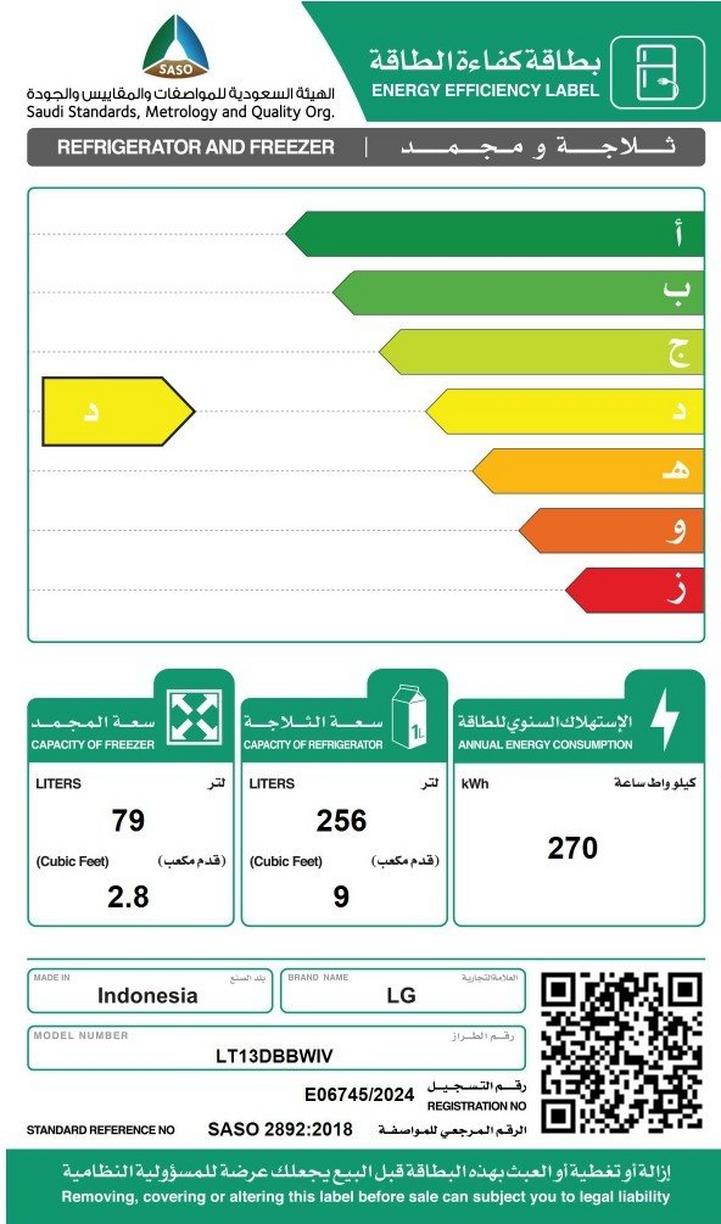 إل جي ثلاجة 9 قدم، فريزر 2.8 قدم، انفرتر، أبيض
