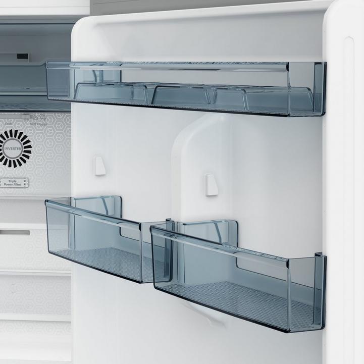 مواصفات المنتج اضاءة داخلية تسهل من الوصول للمكونات في الداخل بسهولة رفوف متينة قوية بما يكفي لتتحمل الأطعمة الثقيلة أرجل قابلة للتعديل اضبط ارجل الثلاجة حسب الارتفاع الذي ترغب به