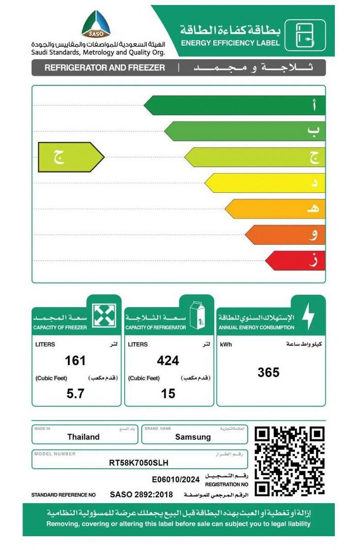 سامسونج ثلاجه 15 قدم,فريزر 5.7 قدم، انفيرتر، استيل