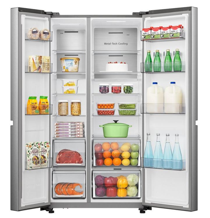 هايسنس، ثلاجه باب جانب باب، 14.7 قدم, فريزر7.8 قدم، انفرتر فضي