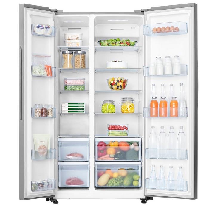 هايسنس، ثلاجه باب جانب باب، 13.2 قدم، فريزر6.9 قدم، انفرتر، فضي