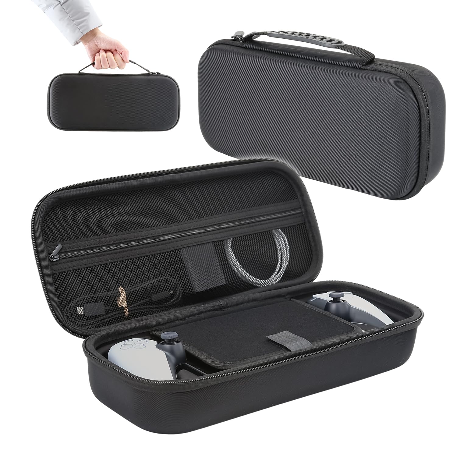 حافظة صلبة لجهاز بلاي ستيشن وملحقاته، حقيبة حمل لبوابة سوني بلاي ستيشن، حقيبة سفر مقاومة للصدمات والانزلاق والخدش (أسود)