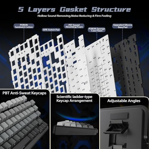 لوحة مفاتيح ميكانيكية لاسلكية للألعاب بحجم 75% مع شاشة TFT ومقبض تحكم من الألومنيوم بلون مون نايت مفاتيح بلو بيري خطية قابلة للتبديل السريع مع إضاءة خلفية RGB وتصميم جاسكت ماونت لتحسين تجربة الكتابة مثالية للألعاب والعمل المكتبي والاستخدام الطلابي مع توافق مع أجهزة الكمبيوتر والكمبيوتر المحمول وويندوز تعمل بالبطارية مع اتصال ثلاثي الأوضاع عبر بلوتوث و2.4GHz اللاسلكي ووصلات USB-C